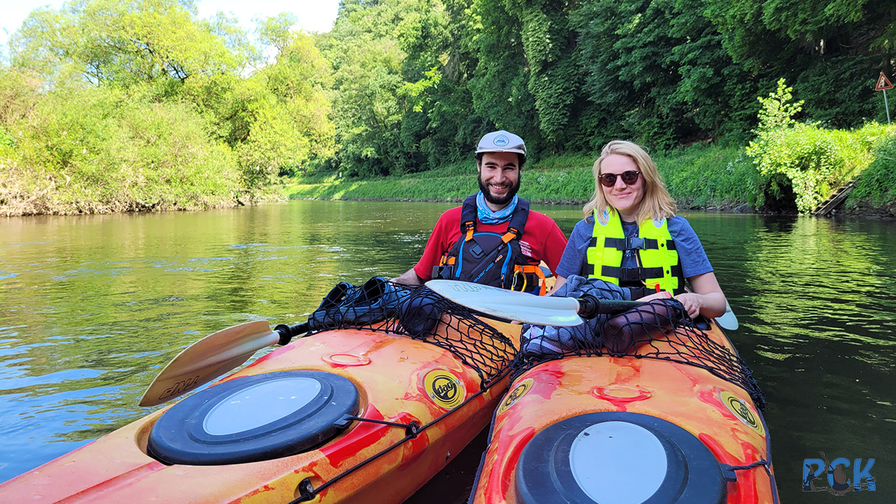 Für einen Teil der Gruppe endet der Trip an die Lahn bereits an diesem Tag. Fünf PCKler jedoch setzen die Fahrt am nächsten Tag fort. Bis nach Runkel soll es am zweiten Tag gehen. Das sind stattliche 25 Kilometer. Ab Weilburg fließt die Lahn deutlich träger dahin, regelmäßig zudem unterbrochen von weiteren Schleusen. Aber wir sind nicht an die Lahn gekommen, um Geschwindigkeitsrekorde aufzustellen. Stattdessen genießen wir die Entschleunigung und fahren gemächlich unserem Ziel entgegen. Der Runkeler Zeltplatz bietet uns neben der Gelegenheit zu einer frischen Dusche auch die Möglichkeit, Vorräte nachzukaufen.