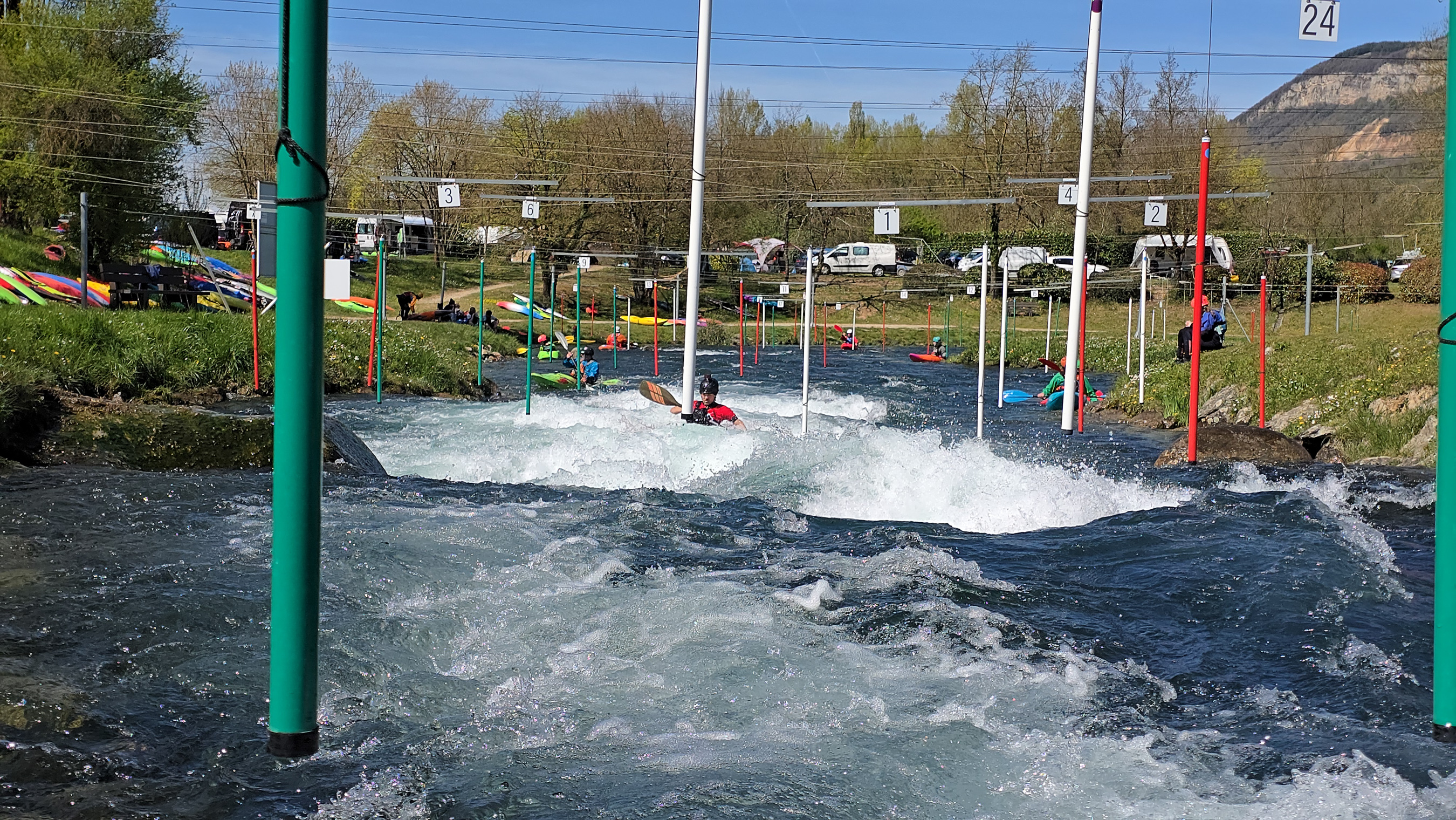 Belgien und anderen europäischen Ländern verbringen in diesem Jahr die Ostertage an dem Slalompark an der Rhone, rund 40 Minuten östlich von Lyon. Darunter ist auch eine vierköpfige Gruppe vom Paddel-Club Köln. Perfektes Wetter ist angekündigt mit Temperaturen bis 25 Grad am Ostersonntag. Diese Aussicht tröstet uns auch über die erste, noch sehr frostige Nacht hinweg. Zum Glück hat der paddelnde Mensch immer reichlich Fleece dabei.